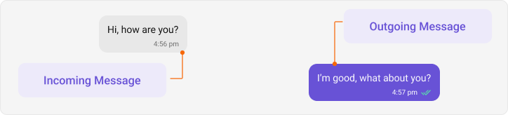 Message bubbles are core elements of the messaging interface. Their collective appearance can be customized to create a consistent design, including color, shape, and overall style for both outgoing and incoming messages. The message bubbles’ styles can be customized by extending the predefined styles in your themes.xml file. Customizing Incoming Message Bubble